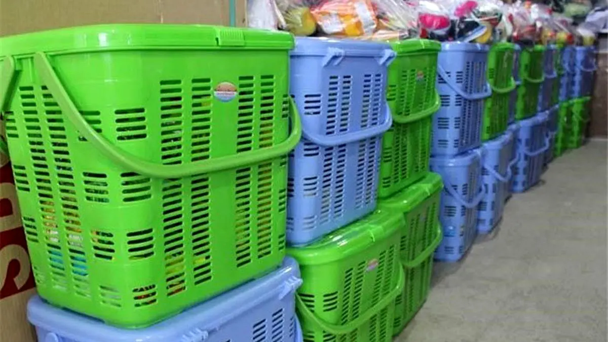 سبد کالای خوار و بار و آجیل ویژه عید نوروز، شامل دو ظرف 810 گرمی روغن سرخ کردنی، 2ظرف 810 گرمی روغن مخلوط و نزدیک به 15 کیلو برنج درجه یک به همراه یک بسته 1200گرمی پسته ، یک بسته 700گرمی تخمه جابونی، یک بسته 700گرمی تخمه کدو، یک بسته 700گرمی بادام درختی، یک بسته 700گرمی مغز فندق، یک بسته 500گرمی بادام هندی، یک بسته هزار گرمی شکلات کاکائویی و یک بسته 500گرمی سوهان عسلی است.