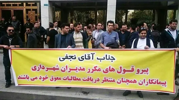تجمع پیمانکارهای طلبکار در مقابل ساختمان مرکزی شهرداری تهران +عکس