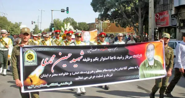 پیکر شهید حسین محمدی استوار یکم وظیفه روز پنج شنبه از مقابل کلانتری ۱۱ واقع در میدان پلیس Police شهر خمین به سمت میدان پانزده خرداد این شهر با حضور گسترده مردم، خانواده های معظم شهدا، مسئولان استانی و شهرستانی و نیروهای نظامی و انتظامی تشییع شد.