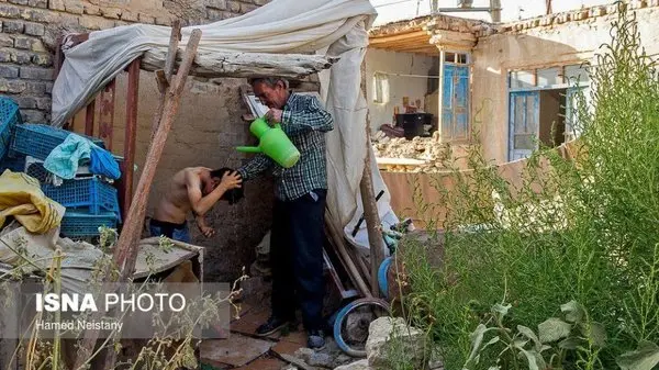 رکنا: تصویری از محل استحمام یک خانواده زلزله زده در یکی از روستاهای خراسان شمالی را میبینید.