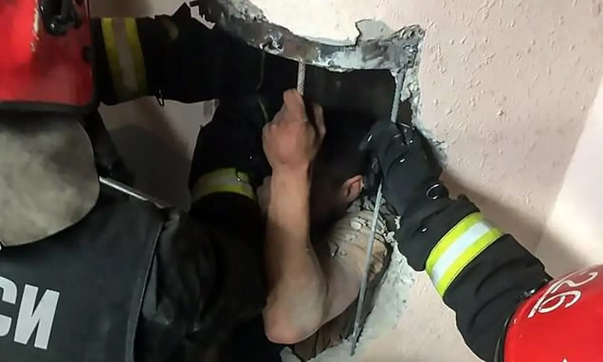 رکنا: مرد بلاروسی که داخل لوله دفع زباله ساختمانی سقوط کرده بود با کمک آتشنشانان نجات یافت.
