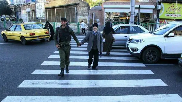 رکنا: تصویر زیبا از یک سرباز وظیفه نسبت به مرد کهنسال هنگام عبور از خیابان در استان آذربایجان شرقی مهربانی او را به تصویر کشید.