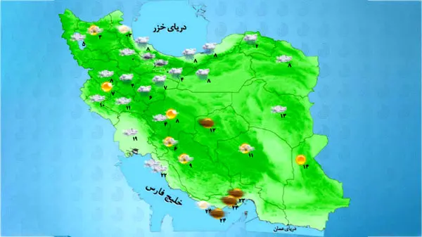 به گفته وظیفه، فردا آسمان تهران صاف، گاهی همراه با وزش باد، در بعد از ظهر ابری خواهد بود. همچنین فردا بارش باران با حداکثر و حداقل دمای 11 و 30 درجه سانتیگراد برای تهران پیش‌بینی می‌شود.