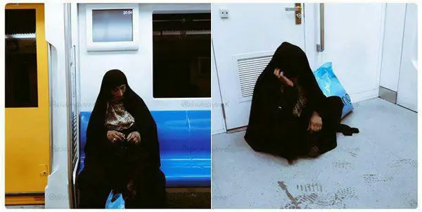 بنابر شنیده ها این زن افغان در اعتراض به توهینی که به وی شده است، صندلی خود را به فرد دیگری داده و در اقدامی اعتراضی روی زمین نشسته است.