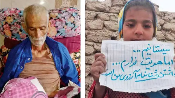 الان بچه خود من یک مریضی ساده دارد باید 100، 150 هزار تومان هزینه کنیم. با این بیکاری از کجا بیاوریم؟ گفتند باید مراحل قانونیاش انجام شود. پدرم را با این حالش بردیم ثبت احوال زابل، از آنجا فرستادند پزشکی قانونی زاهدان که آن هم مواد آزمایش را نداشتند. گفتند به خاطر تحریم است. گفتند خود شورای تأمین زابل تصمیم بگیرد که شناسنامه شما را بدهد یا نه. الان اینجور گفتهاند که شورای تأمین پرونده را فرستاده استانداری که آنجا بگویند چه کار باید بکنیم. پدر من چون عشایر بوده دیگر دنبال شناسنامه نرفته. آنهایی که دریا میرفتند برای صیادی یا مثل پدر من دنبال گوسفندداری بودند، سراغ شناسنامه نرفتند وگرنه توی فامیلمان بعضی شناسنامه دارند. الان بچههای من بدون شناسنامه مدرسه میروند و مشکل مدرسه ندارند اما هیچ اوراق شناسایی نداریم. هیچ کجا جایمان نیست. پدر من چون برادر بزرگ است، باید اول شناسنامه بگیرد تا برادر و خواهرش هم بگیرند. الان توی احمدآباد خودمان 50، 60 تا خانواده شناسنامه گرفتند. ما کلی تلاش کردیم که صدای ما برسد. توی تلگرام فیلم پدرم را گذاشتند که همه ببینند این پیرمرد بیچاره با این حال تنها خواستهاش این است که شناسنامه بگیرد. میترسم خدای نکرده اتفاقی برایش بیفتد و حسرت به دل از دنیا برود.»