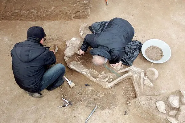 وی افزود: با توجه به این خطر، تیمی از باستان شناسان کاوش اضطراری این محوطه را آغاز کردند. در کاوشهای انجام شده آثار چند گور کشف شده که کاملترین آنها اسکلت انسانی است که همراه با ابزار جنگی و ظروف حاوی مواد خوراکی دفن شده است.