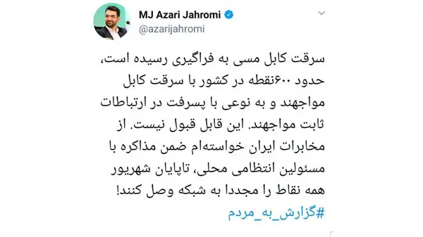 دستور وزیر ارتباطات برای جلوگیری از سرقت کابل های کشور+ عکس