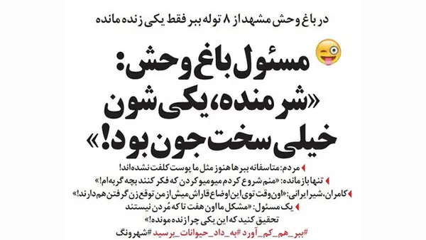رکنا: «در باغ وحش مشهد از 8 توله ببر، تنها یکی زنده مانده» این خبر سوژه طنز شهرونگ شد.