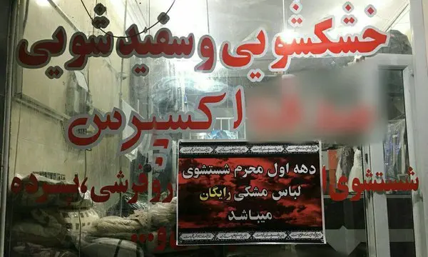 رکنا : یک خشکشویی در بافق یزد در دهه اول ماه محرم به مشتریان خود خدمتی ویژه را ارائه می دهد.