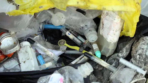 انباشت زباله های بیمارستانی سرکوچه های شهر + فیلم