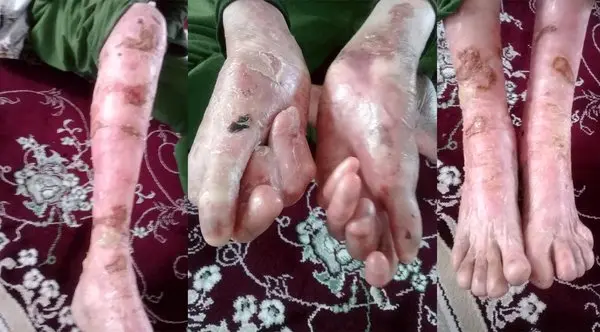 می گوید: حالم خوب نبود، رفتم بیمارستان و گفتند مبتلا به کرونا شده ام . می گوید اولین بار که رفتم بیمارستان و تشخیص دادند که کرونا دارم، گفتند که اگر می توانی به خانه برو، استراحت کن و ما به تو کپسول اکسیژن می دهیم. با کپسول اکسیژن به خانه آمدم. اما پس از دو روز آمدند و آن را بردند. تنها دو روز در خانه کپسول اکسیژن داشتم. لرزها و تنگی نفس شدید پیدا کردم. وقتی اکسیژن را بردند، حالم بد شد. البته هم من و هم خواهرم که حالمان بد بود، نمی دانستیم به خاطر زخم ها است یا کرونا. ولی بعد از اینکه لرز شدید پیدا کردم دوباره به بیمارستان رفتیم. اما باز بستری نشدم و گفتند که به قرنطینه برویم. فقط داروها را به ما دادند.