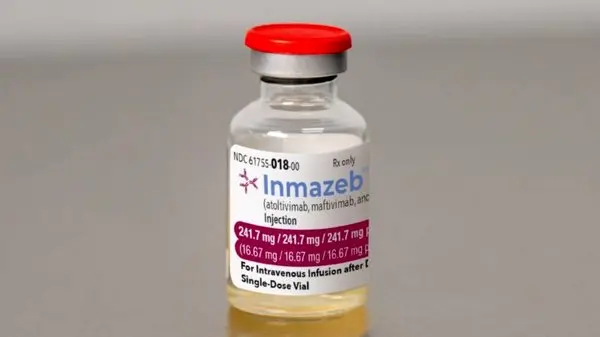 داروی تایید شده با نام «Inmazeb»، مخلوطی از سه آنتی بادی است که ویروس ابولا را مهار میکند. دارو توسط شرکت «Regeneron Pharmaceuticals» ساخته شده است. این شرکت در تلاش است تا برای درمان بیماری کووید-19 نیز بتواند درمانی برپایه آنتی بادی ارائه دهد. در آزمایشهای بالینی، بیمارانی که دارو را مصرف کردند، به مراتب کمتر جان خود را در اثر ابولا از دست دادند.