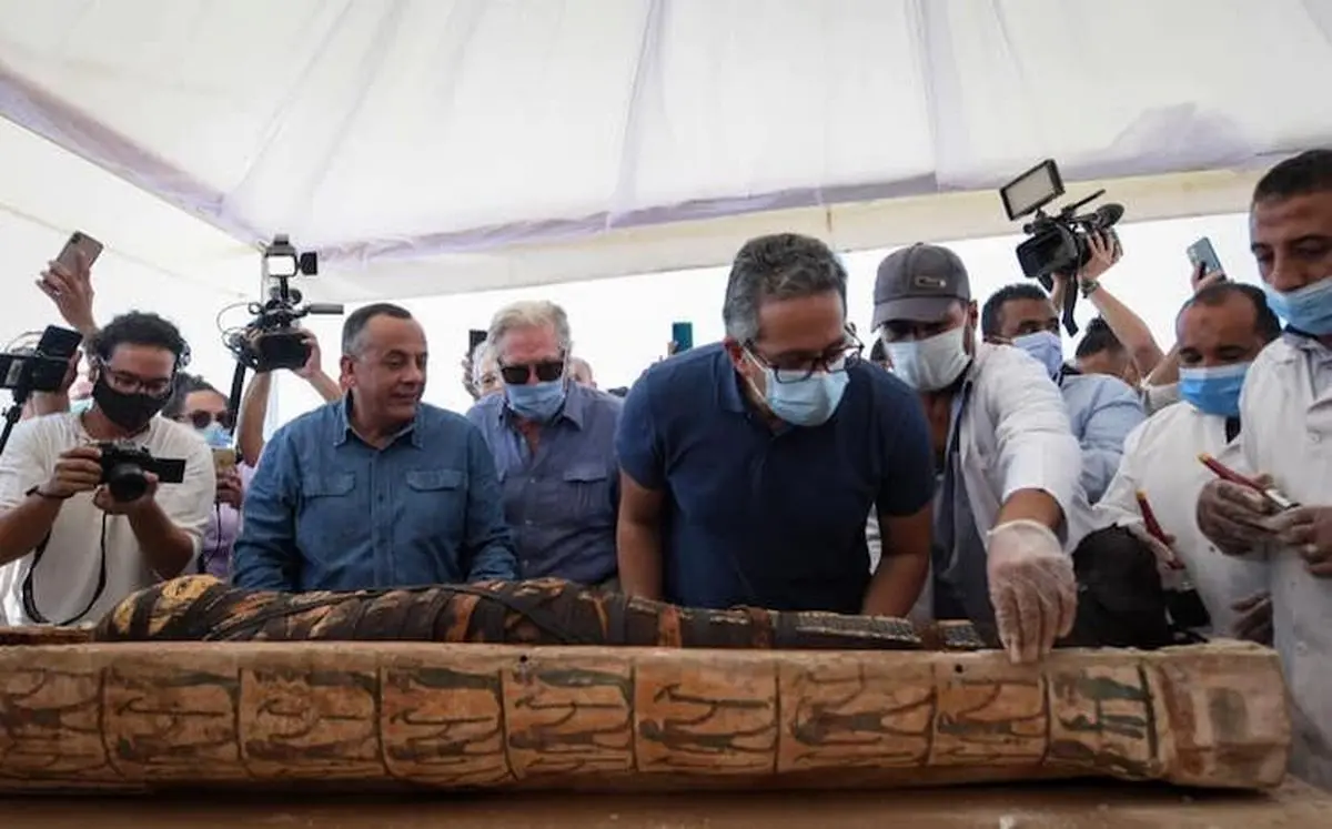 به گزارش رکنا،در محاصره مطبوعات و محققان، مومیایی کاملاً حفظ شده در داخل یکی از ۵۹ تابوت کشف شده را رونمایی کردند. مومیایی هنوز در پارچه دفن خود پیچیده شده و پارچه رنگ خود را حفظ کرده است. بر اساس تجزیه و تحلیل اولیه، محققان بر این باورند که اجساد مربوط به افراد برجسته جامعه است.
