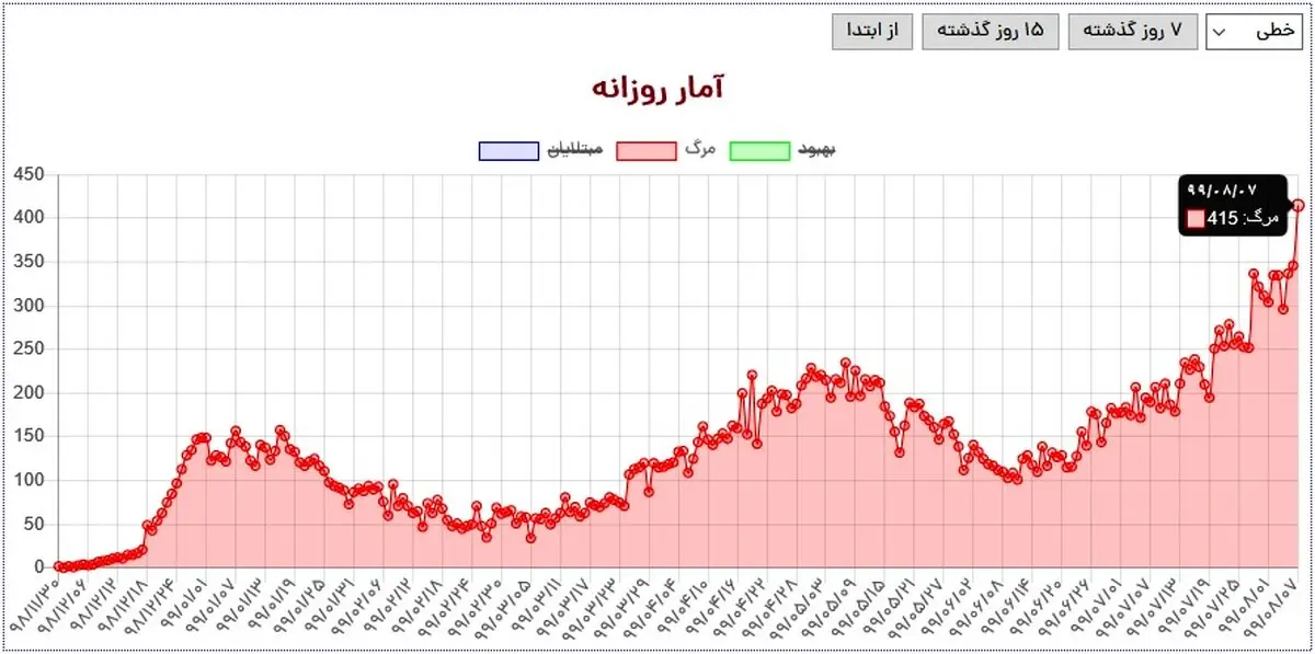 نمودار مرگ و میر کرونا در ایران / رشد صعودی ترسناک