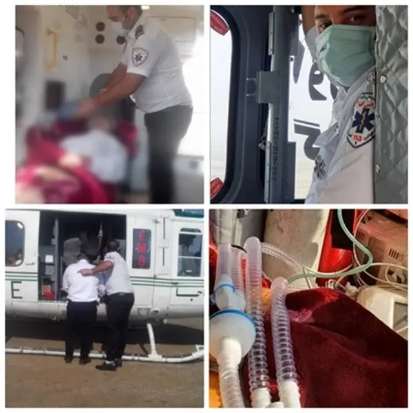 انتقال هوایی زن سوخته از املش به رشت + عکس
