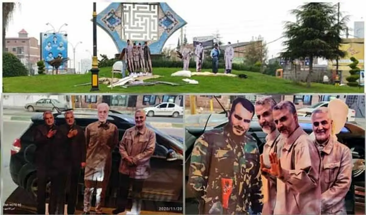 اشتباه بزرگ در نصب ماکت های سردار سیلمانی و همراهانش در مازندران + عکس ها