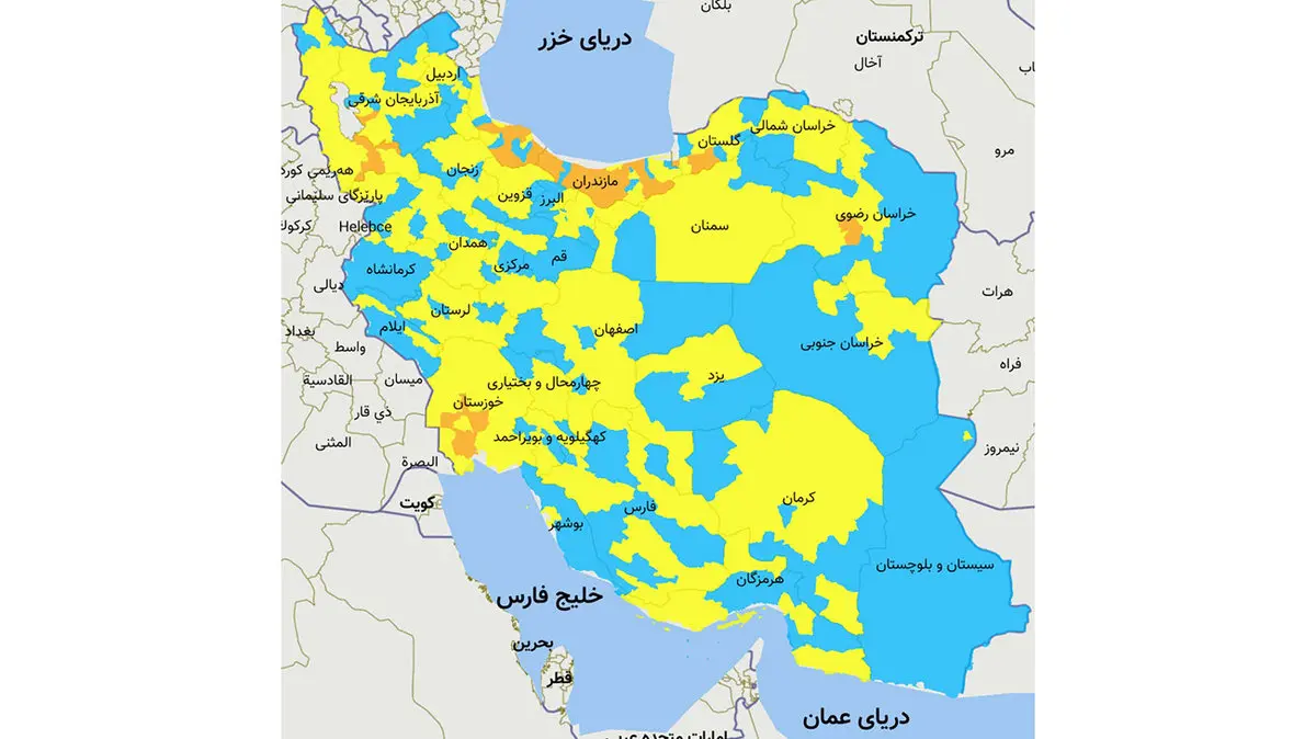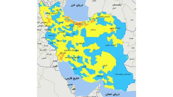 نقشه وضعیت رنگ بندی شهرهای کرونایی کشور
