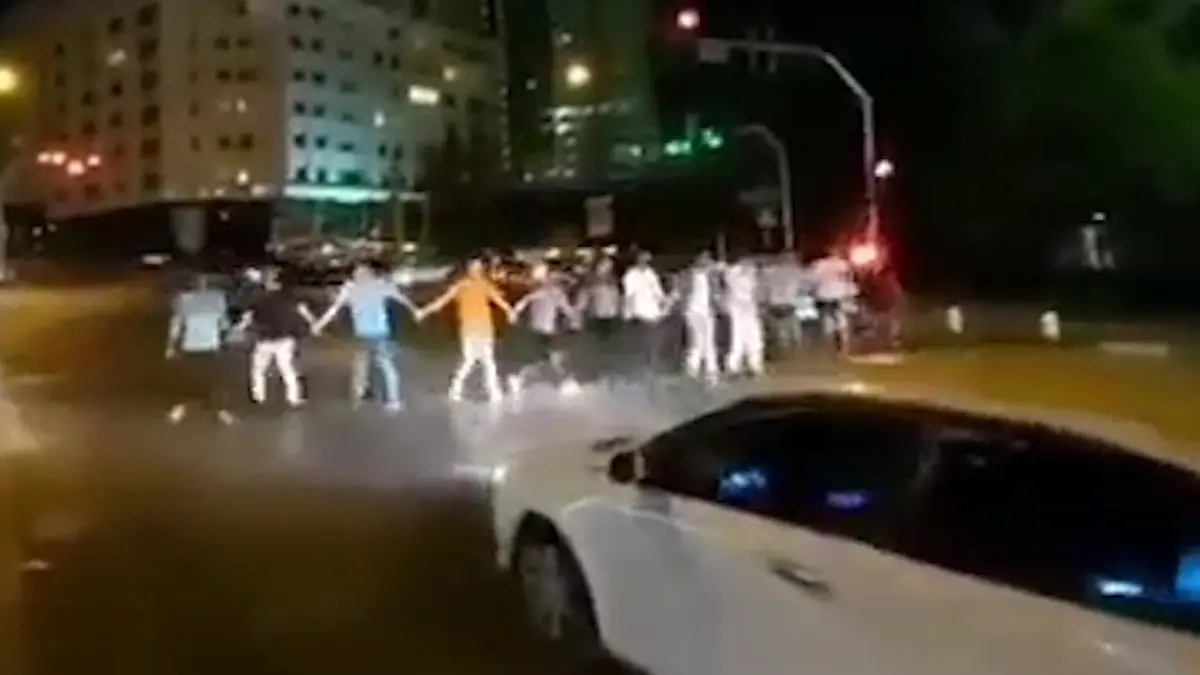 رکنا: رقص دستهجمعی مقابل یک چراغ قرمز دیگر این بار در شهرک غرب تهران. گفته میشود این اقدام در جهت روحیه دادن به مردم در سراسر کشور توسط جوانان کلید خورده است.