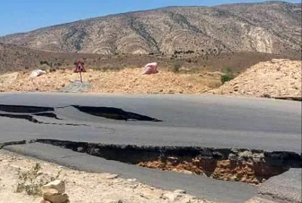 فرونشست عمیق در جاده سیاخ دارنگون شیراز/خطوط گاز و نفت کشور چشمه خطر شدهاند، اکثر روی فرونشست و گسل