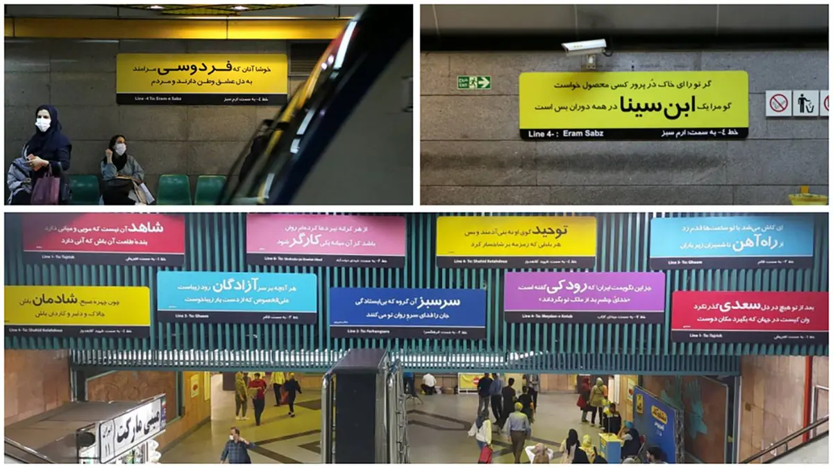 این روزها علاوه بر بیلبوردهای تبلیغاتی در گوشه و کنار تهران، شاهد یک تغییر در تابلوهای ایستگاههای مترو هستیم. تابلوهای اسم هر ایستگاه با شعری از شاعران فارسی متفاوت شدهاند و حتماً آنهایی که مسیر هر روزهشان را با مترو طی میکنند، آنها را دیدهاند. ایستگاه سعدی، رودکی، فردوسی، شادمان و ابنسینا بهتازگی تغییر کرده و بهجای تنها یک اسم، شعری روی تابلو نوشته شده که اسم ایستگاه هم در آن شعر آمده است.