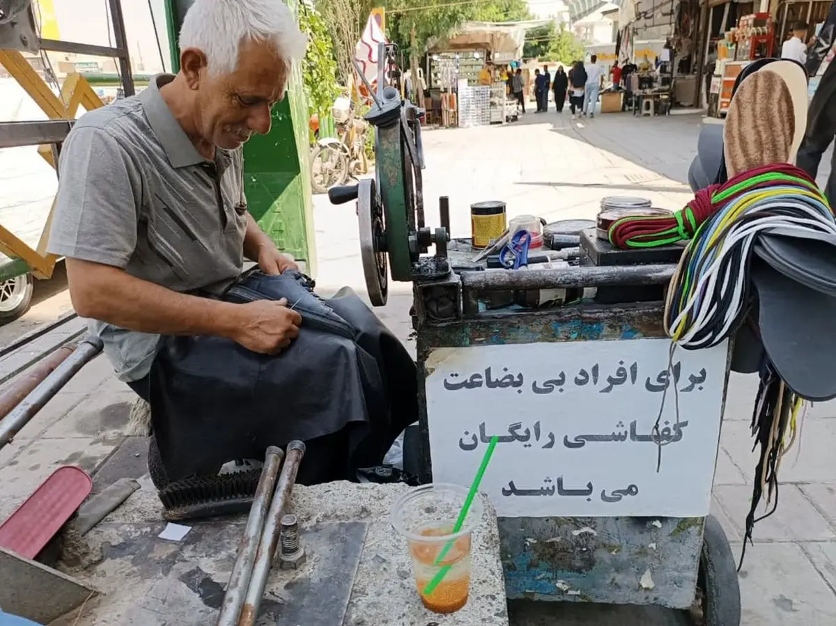 به گزارش رکنا از کرمانشاه، حسین مسکنه: کمتر کسی است که از میدان آزادی رد شده باشد و بساط کفاش خیر کرمانشاهی را ندیده باشد. این کفاش با نصب برگه ای در چرخ سیار خود نوشته است: " تعمیر کفش برای افراد بی بضاعت رایگان است ".