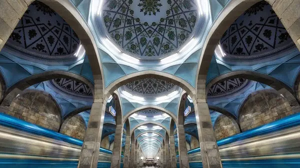 به گزارش رکنا، این ایستگاه یکی از تنها دو متروی موجود در آسیای مرکزی است و به واسطه معماری سنتی خود با ستونهای سر به فلک کشیده، سقف گنبدی تزئینشده با نقشهای گل پیچیده و دیوارهای سرامیکی در فهرست زیباترین ایستگاههای متروی جهان جای دارد.