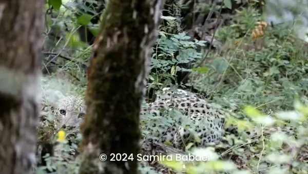 به گزارش رکنا، خانم بابایی نوشته که پلنگ در «فاصله کمتر از ده متر ولی جوری بین درخت‌ها و بوته ها استتار بود که دیدنش سخت بود».