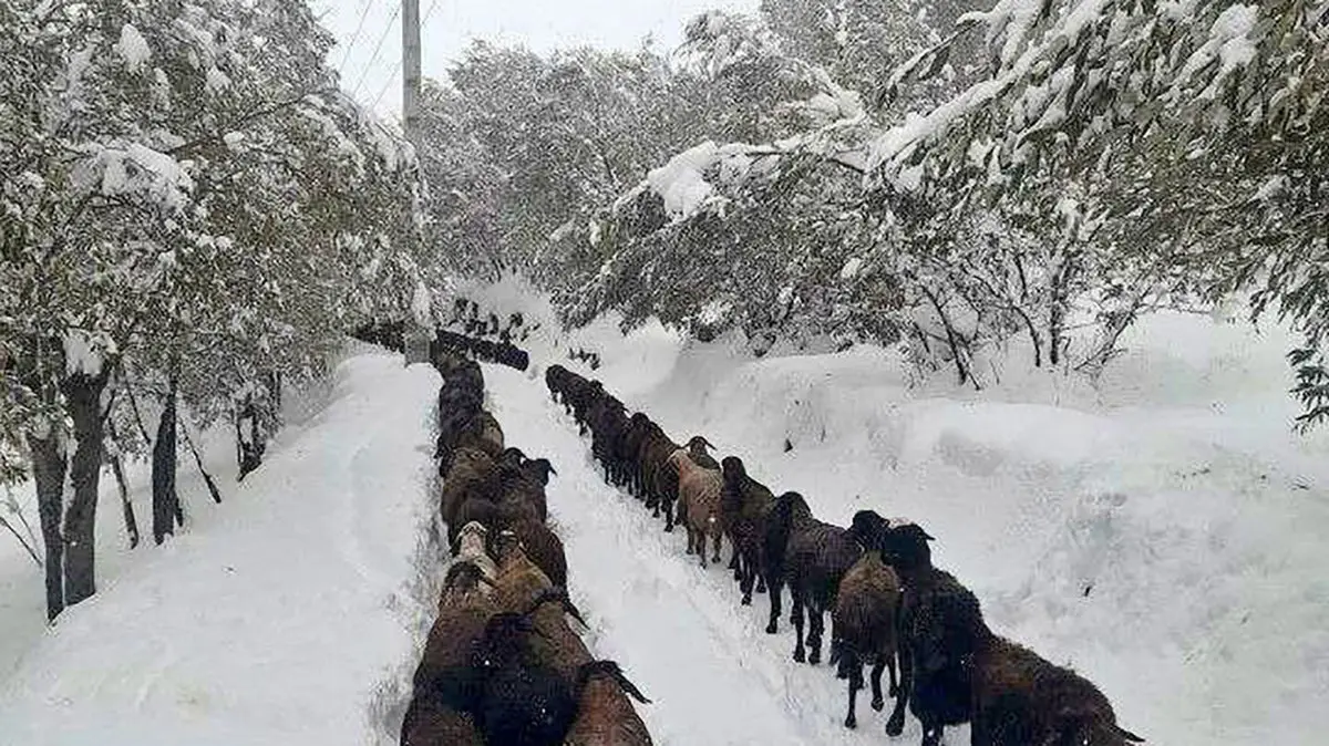 گوسفندان هم از بارش برف شگفت زده شدند ! + عکس