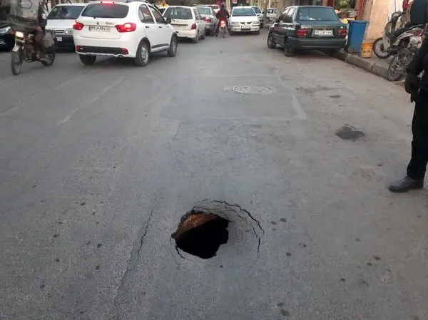 فرونشست خیابانی در اصفهان؛ فرسودگی لولههای فاضلاب عامل حادثه