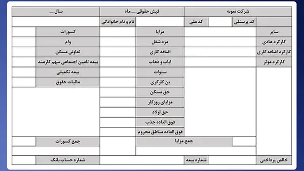 رکنا: فیش حقوقی سندی رسمی و معمولاً ماهانه است که از سوی کارفرما به کارکنان ارائه میشود و در آن جزئیات مربوط به پرداخت حقوق و مزایا مشخص میشود. این سند شامل اطلاعات مختلفی است که به فرد اجازه میدهد میزان حقوق ناخالص، کسورات، مزایا و حقوق خالص خود را مشاهده کند.