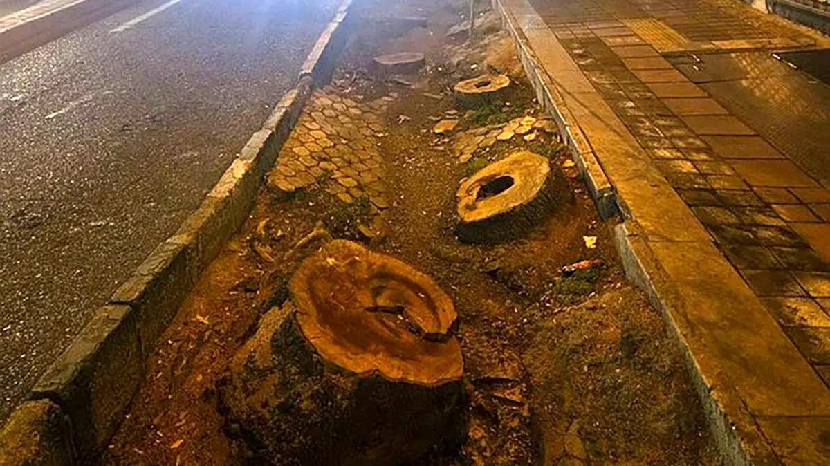 بیماری «فیتیله نارنجی» علت قطع درختان خیابان فلسطین ! + عکس