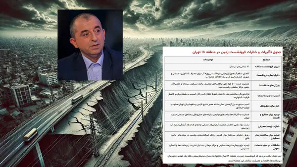 جدول تأثیرات و خطرات فرونشست زمین در منطقه ۱۸ تهران