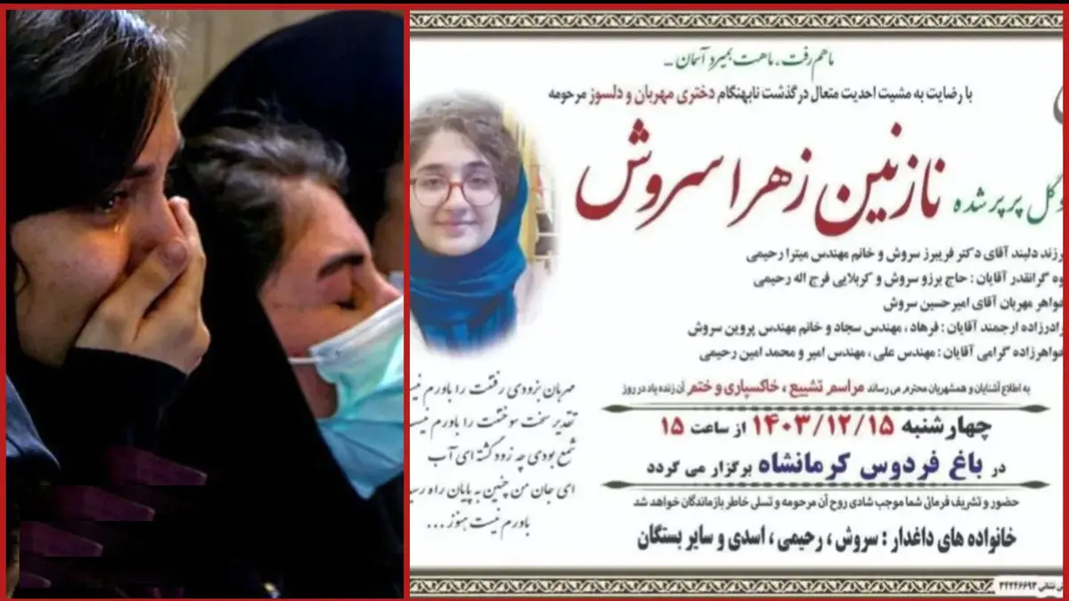 به گزارش رکنا، نازنین زهرا سروش، دانشآموز نخبه پایه دوازدهم تجربی، روز گذشته به دلیل حادثهای ناشی از قطع برق جان خود را از دست داد.