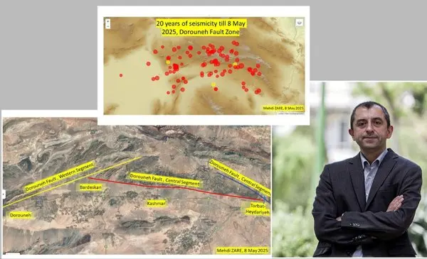 به گزارش خبرنگار اجتماعی رکنا، در بازهای کمتر از یک هفته، دو زمینلرزه با بزرگای ۴.۸ در بخشهای شرقی و مرکزی سامانه گسله درونه، واقع در شمال لوت، به وقوع پیوستند. این رویدادها که با پسلرزهای به بزرگای ۴.۷ همراه بودند، نشانهای از فعالشدن مجدد قطعات مختلف این گسل با طول بیش از ۷۰۰ کیلومتر به شمار میروند. بررسی پیشینه لرزهخیزی این سامانه و رفتارهای فوجگونه اخیر آن، بر لزوم پایش دقیقتر و تدوین راهبردهای کاهش ریسک لرزهای در شهرهای پیرامونی چون تربت حیدریه، کاشمر، بردسکن و خواف تأکید دارد.