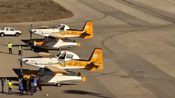 رکنا: دو فروند هواپیمای آبپاش و یک فروند هلیکوپتر اطفای حریق از کشور ترکیه جهت سوختگیری، وارد فرودگاه اردبیل شدند.