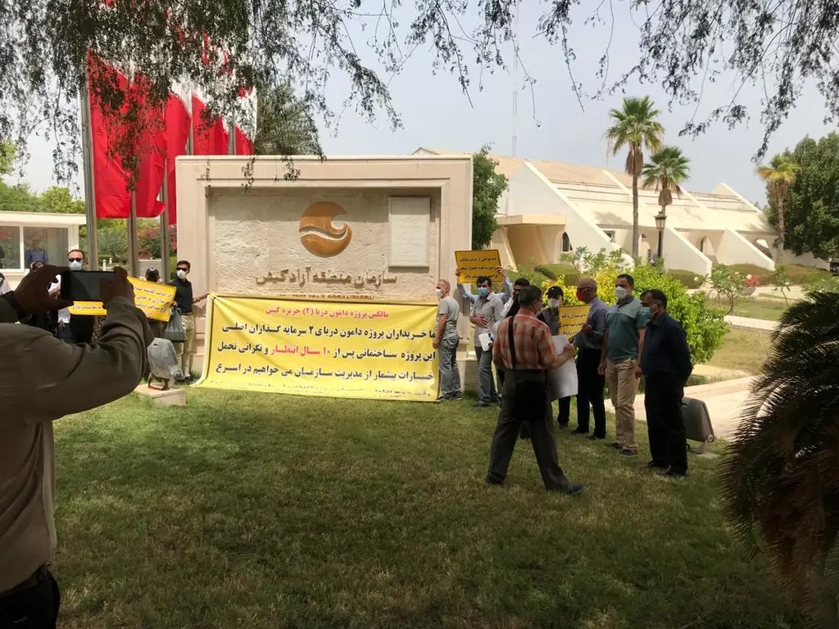 حال 140 مالک این واحدها، با تجمع در برابر ساختمان مناطق آزاد کیش از رئیس این سازمان خواستار شدند که به شرایط بلاتکلیف آنها رسیدگی کند.