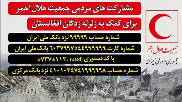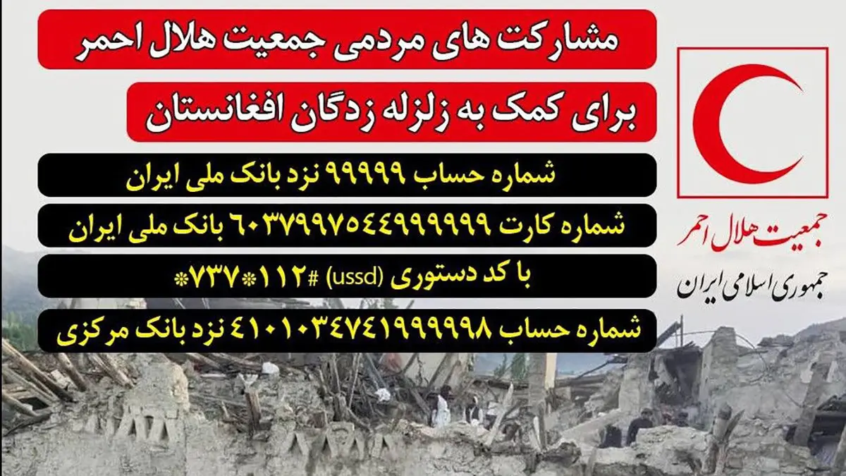 هلال احمر برای کمک به زلزله زدگان افغانستان شماره حساب اعلام کرد