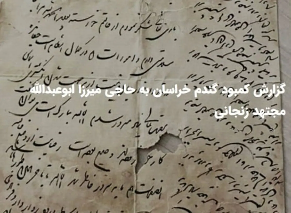 کمبود گندم خراسان به حاجی میرزا ابوعبدالله مجتهد زنجانی + سند