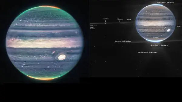 رکنا: تازه ترین تصاویر تلسکوپ فضایی جیمز وب از سیاره مشتری این غول گازی منظومه شمسی را با جزئیات خیره کنندهای که پیش از این هرگز ندیده بودیم نشان میدهد.