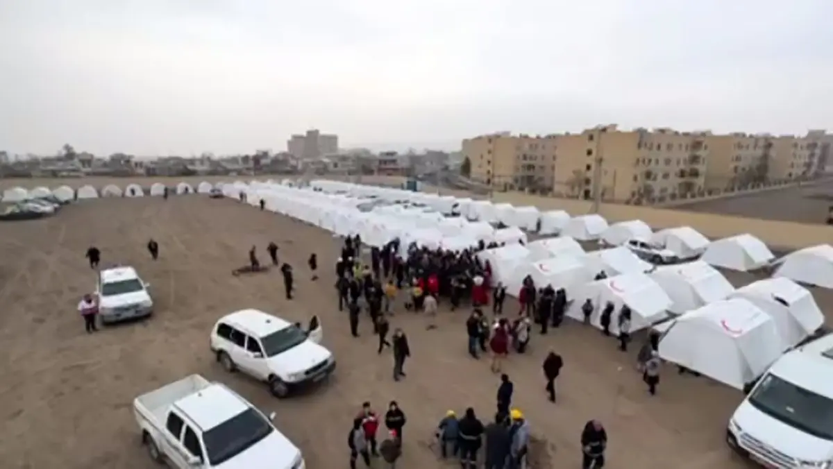 تصاویری از برپایی چادرهای هلال احمر در منطقه زلزله زده خوی +فیلم