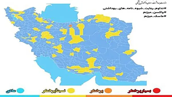 تعداد شهرهای با وضعیت زرد از ۱۰۵ به ۹۵ شهر و تعداد شهرهای با وضعیت آبی از ۳۴۱ به ۳۵۲ شهر رسیده است.