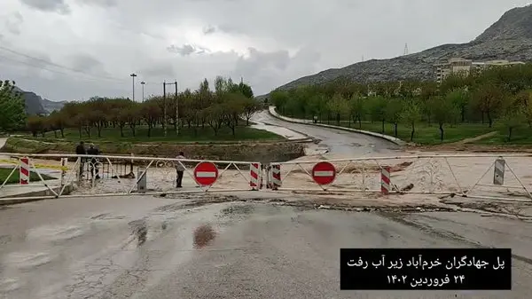رکنا: پل جهادگران خرم آباد زیر آب رفت.