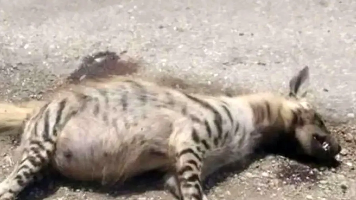 رکنا: یک قلاده کفتار راه راه در شمال خوزستان ، جادخ پل زال در اثر تصادف جاده ای تلف شد.
