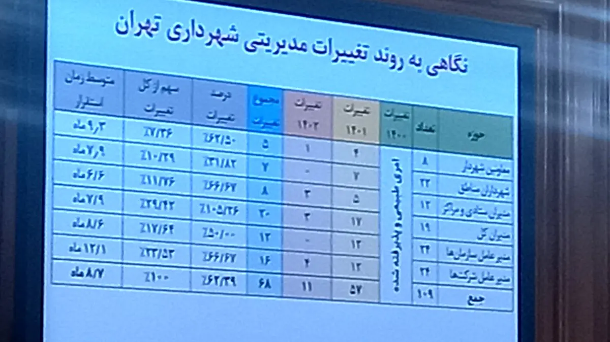 رکنا: عضو شورای شهر تهران گفت: طی ۱۵ ماه گذشته، از ۱۰۹ مدیر ارشد در شهرداری تهران، ۶۸ نفر جابجا یا برکنار شدهاند.