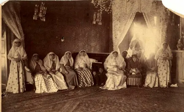 زنان اولاد دار شاه ناصری در حیاط «سروستان»