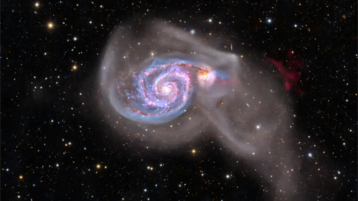 به گزارش رکنا به نقل از دیجیاتو، تلسکوپ های زمینی با بیش از ۱۰ روز نوردهی و ترکیب تصاویر، این پرتره کهکشانی از M۵۱ را ایجاد کردند.