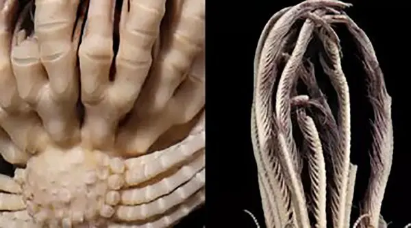 محققانی که در اقیانوس نزدیک قطب جنوب کار می‌کردند، این گونه جدید از موجودات دریایی را کشف کردند. این موجود کمی شبیه عروس‌دریایی است که آن قسمت گرد بدن عروس دریایی را ندارد. همچنین بخشی از شاخک‌ها یا دست‌هایش پَردار هستند و بخشی دیگر برجستگی‌های متعدد دارند. رشته‌های شاخک‌مانند کوچکتری هم به بدن این موجود متصل‌اند و هر ۲۰ دست این موجود عجیب و ترسناک به پنجه‌های ریزی مجهزند که به آن کمک می‌کنند خود را در اعماق و کف دریا نگه دارد.