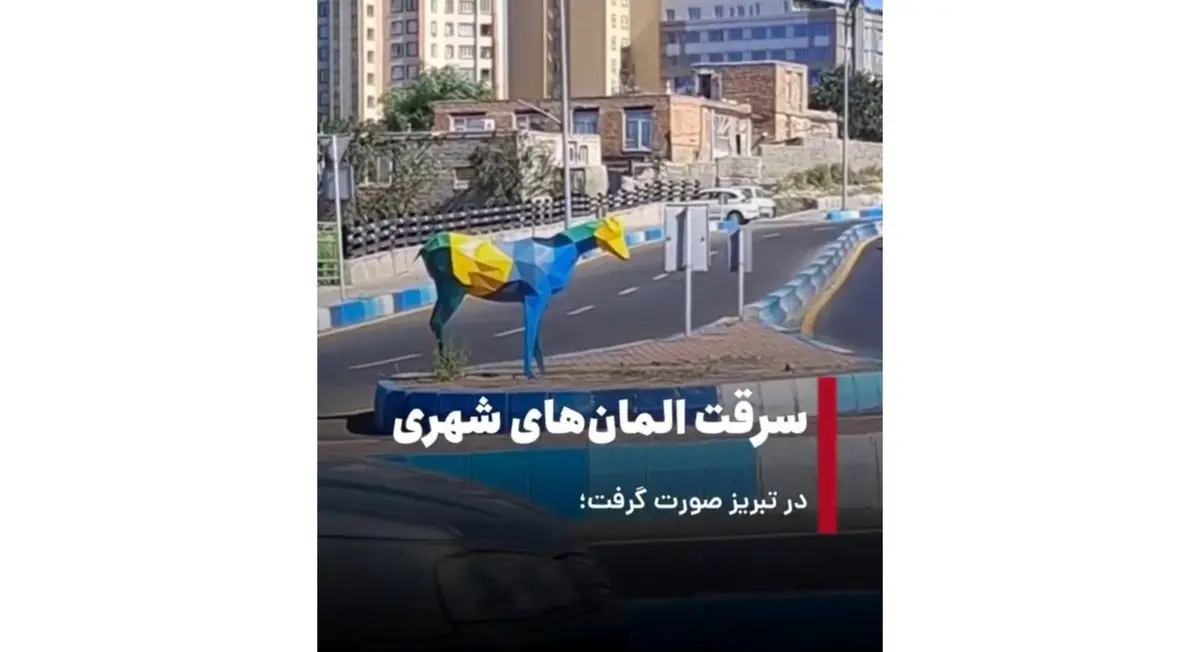 به گزارش رکنا، یکی از شهروندان در تبریز با گرفتن فیلم از یکی از نقاط این شهر اعلام کرد:" در این تقاطع مجمسه دو آهو و یک گوزن وجود داشت. مدتی پیش یکی از آهوها به سرقت رفت، و اکنون آهو دوم و شاخ گوزن باقی مانده نیز به سرقت رفته است."