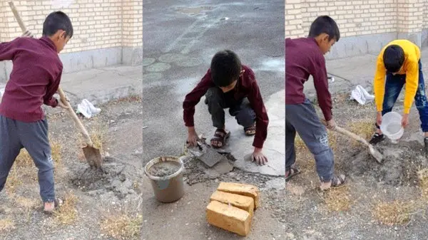 او می گوید: من می خواستم نقاط حادثه خیز مدرسه را درست کنم و برای همین وسایل لازم را برداشتم و با کمک دوستانم آن نقاط را درست کردم. سیمان، بیل و ماله را از خانه بردم و شن و آجر هم در مدرسه داشتیم. خودم، پسرعموهایم، امیرصالح، ارسلان (دوستانم) و مدیر مدرسه، رفتیم و جایی که خراب شده بود را درست کردیم.