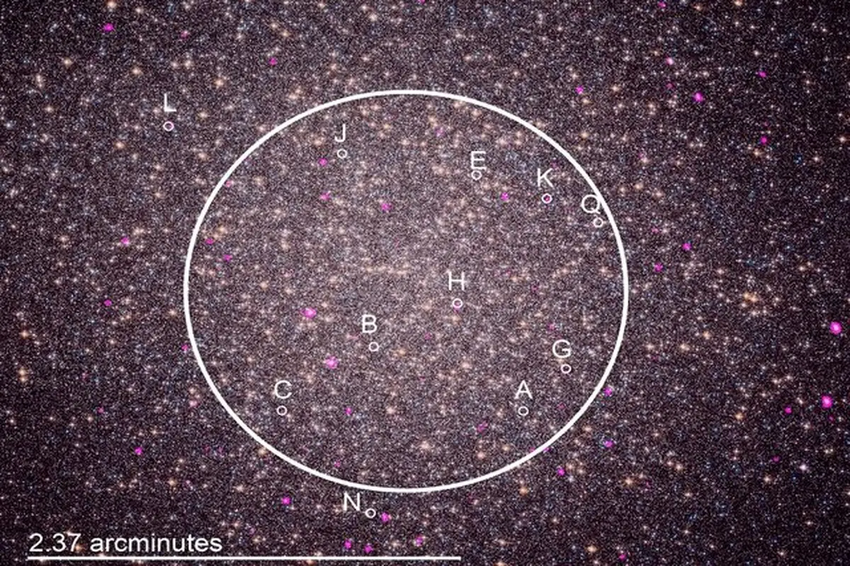 پژوهشگران ۱۱ تپ‌اختر میلی‌ثانیه‌ای را یافتند که پرتو ایکس ساطع می‌کردند و پنج مورد از آنها تپ‌اخترهای عنکبوتی بودند که در نزدیکی مرکز امگا قنطورس متمرکز شده‌اند. سپس، آنها داده‌های امگا قنطورس را با مشاهدات چاندرا در مورد ۲۶ تپ‌اختر عنکبوتی در ۱۲ خوشه کروی دیگر ترکیب کردند.